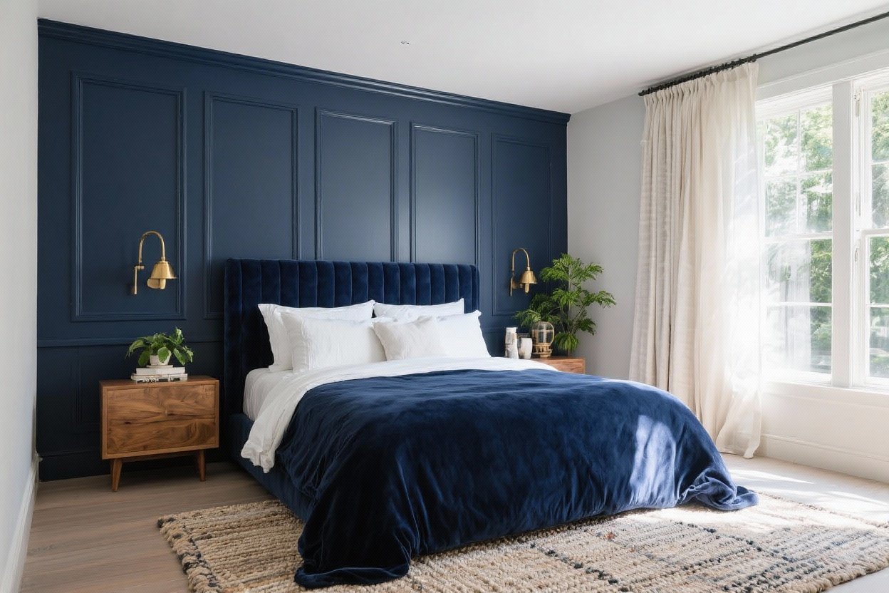 - Choose the right undertone: If your room faces north, pick a navy with a touch of warmth (think inky indigo). South-facing rooms can handle cooler navies with gray or green undertones.