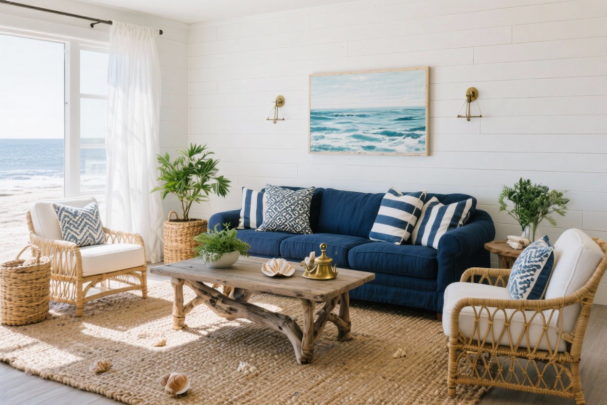 Final Thought: You don’t need to live by the water to live like you do. Pick one or two ideas to start—maybe a navy rug and a few woven accents—then layer slowly. Before you know it, your home will feel like a breezy escape you never have to leave.