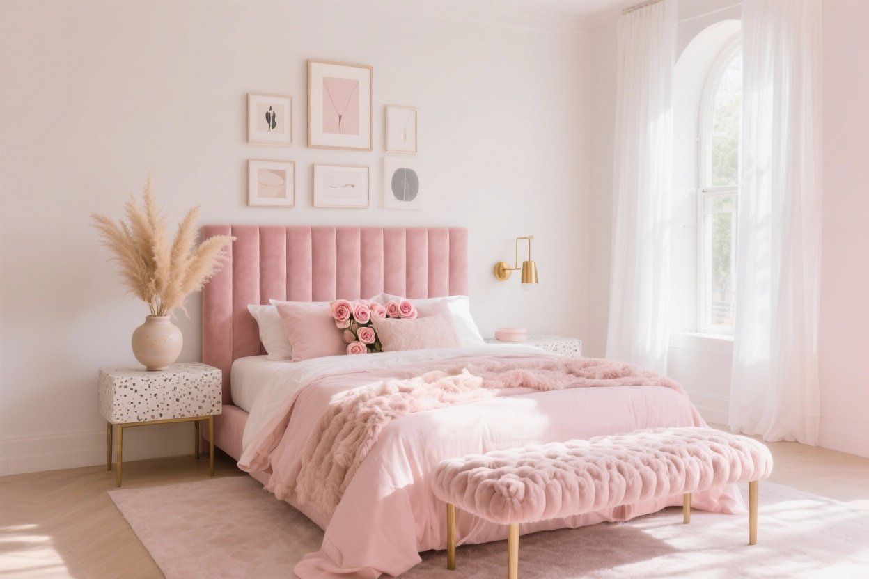 Not every corner needs to shout “pink.” Sometimes you just need one really good mic-drop moment. An accent wall, a pink upholstered headboard, or a statement rug can carry the whole room without overwhelming it.