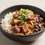 This bowl delivers everything you want in a hearty, satisfying meal: crispy edges of tender pork, fluffy cilantro-lime rice, creamy beans, and bright, crunchy toppings. It’s a simple combo that tastes restaurant-level without being fussy. The pork can be cooked low and slow or sped up in an Instant Pot, and the rest comes together while it simmers.