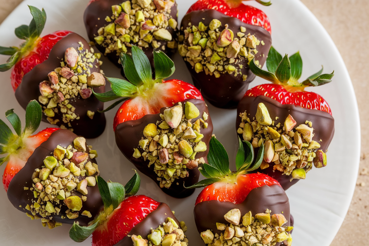 Chocolate-Dipped Strawberries with Pistachio Crumble